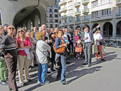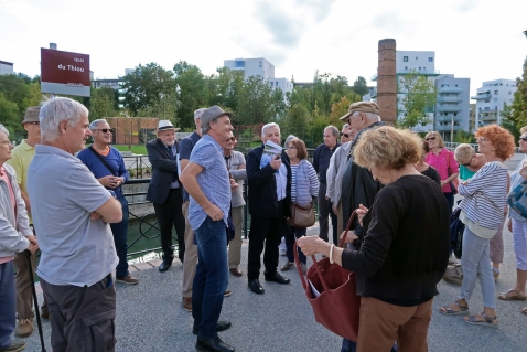 Jean Boutry, ancien maire de Cran-Gevrier qui s’est beaucoup investi dans l’aménagement de ce secteur a conduit et animé la visite. L'histoire "vécue" racontée par un de ses acteurs principaux a permis de suivre et comprendre les décisions complexes prises pour arriver à la création du centre ville "Chorus", puis à la réalisation du projet "Passerelles" à dimension sociale et économique forte, et enfin à l'aménagement du Cercle d'Eau.